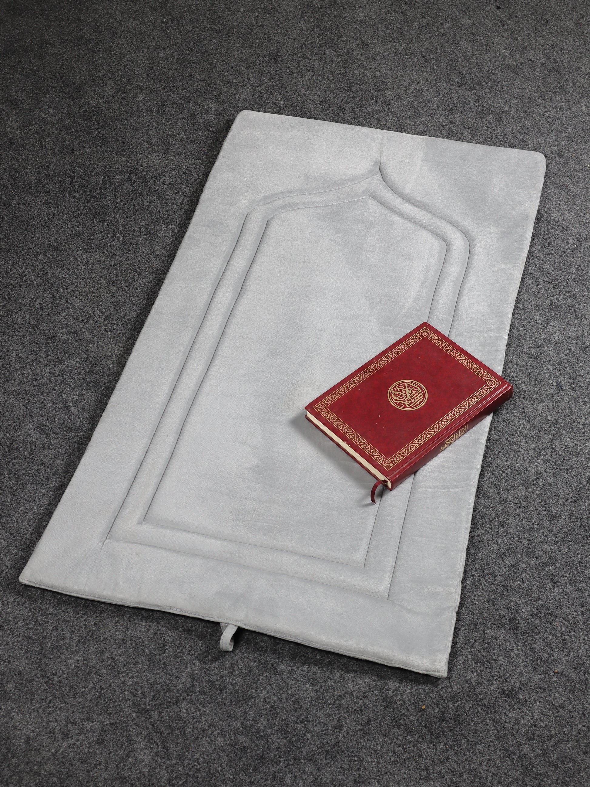 مصلية بتصميم بسيط بدون تطريز، خامة قطيفة ناعمة وبطانة إسفنج عالية الكثافة لراحة الركبة. مناسبة للاستخدام اليومي والسفر مع شريط لفّ وعليقة للتخزين.