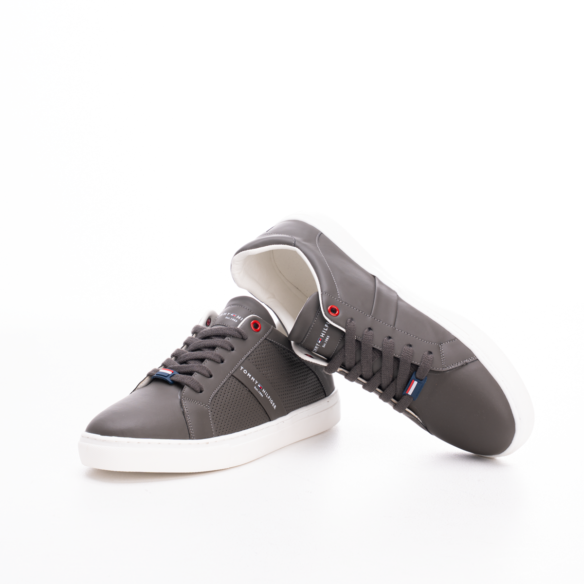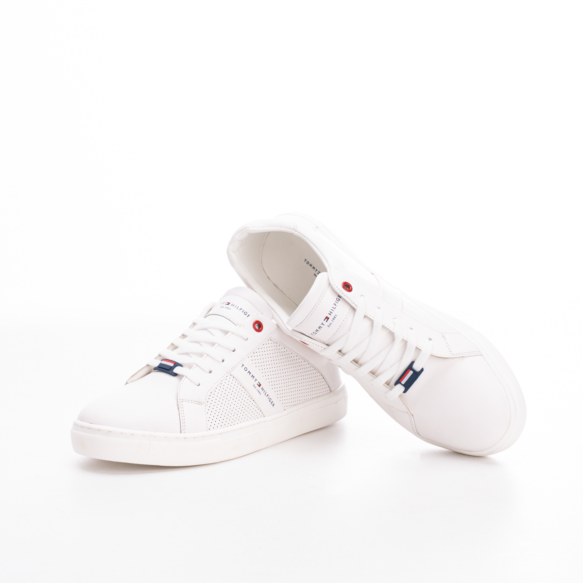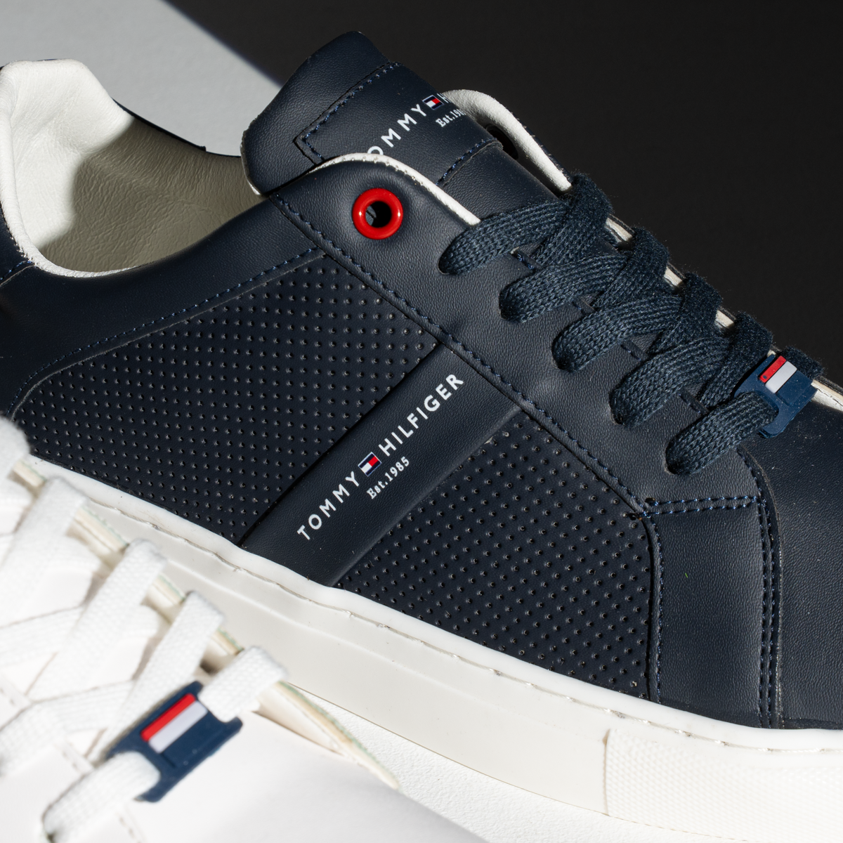 سنيكر تومي رجالي بخامة جلد مستورد، بطانة مرنة، وفرش طبي مريح. نعل مطاطي ثابت وتصميم منخفض يناسب الخروجات واللبس اليومي.