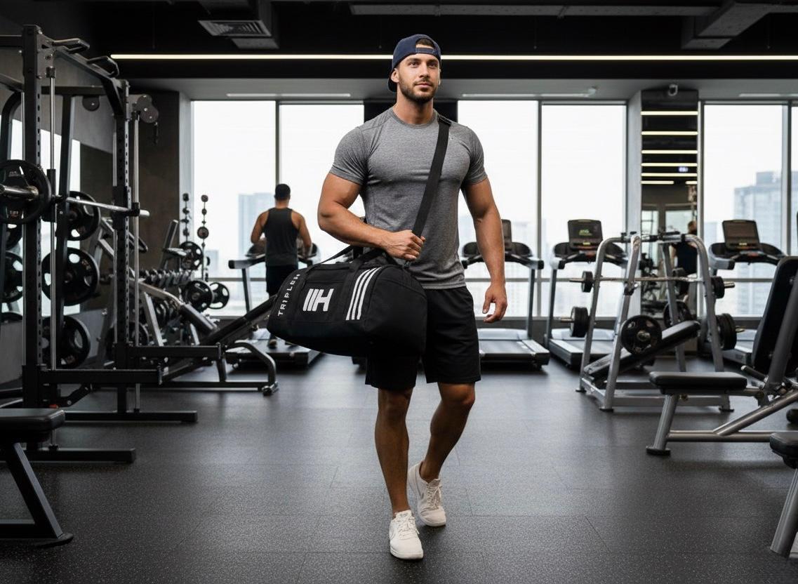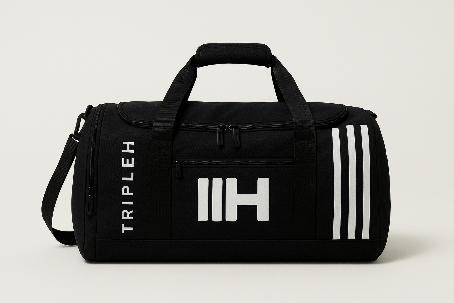 شنطة Triple H الرياضية تجمع بين الأناقة والعملية. تصميم دفل أسود شيك بمساحة واسعة وجيوب متعددة لتنظيم ملابسك وأحذيتك وأدوات التدريب. خامة قوية مع سوست متينة وإغلاق آمن، يد حمل قوية وحزام كتف قابل للتعديل. مناسبة للجيم والسفر والجامعة والعمل والرحلات، للرجال والنساء.