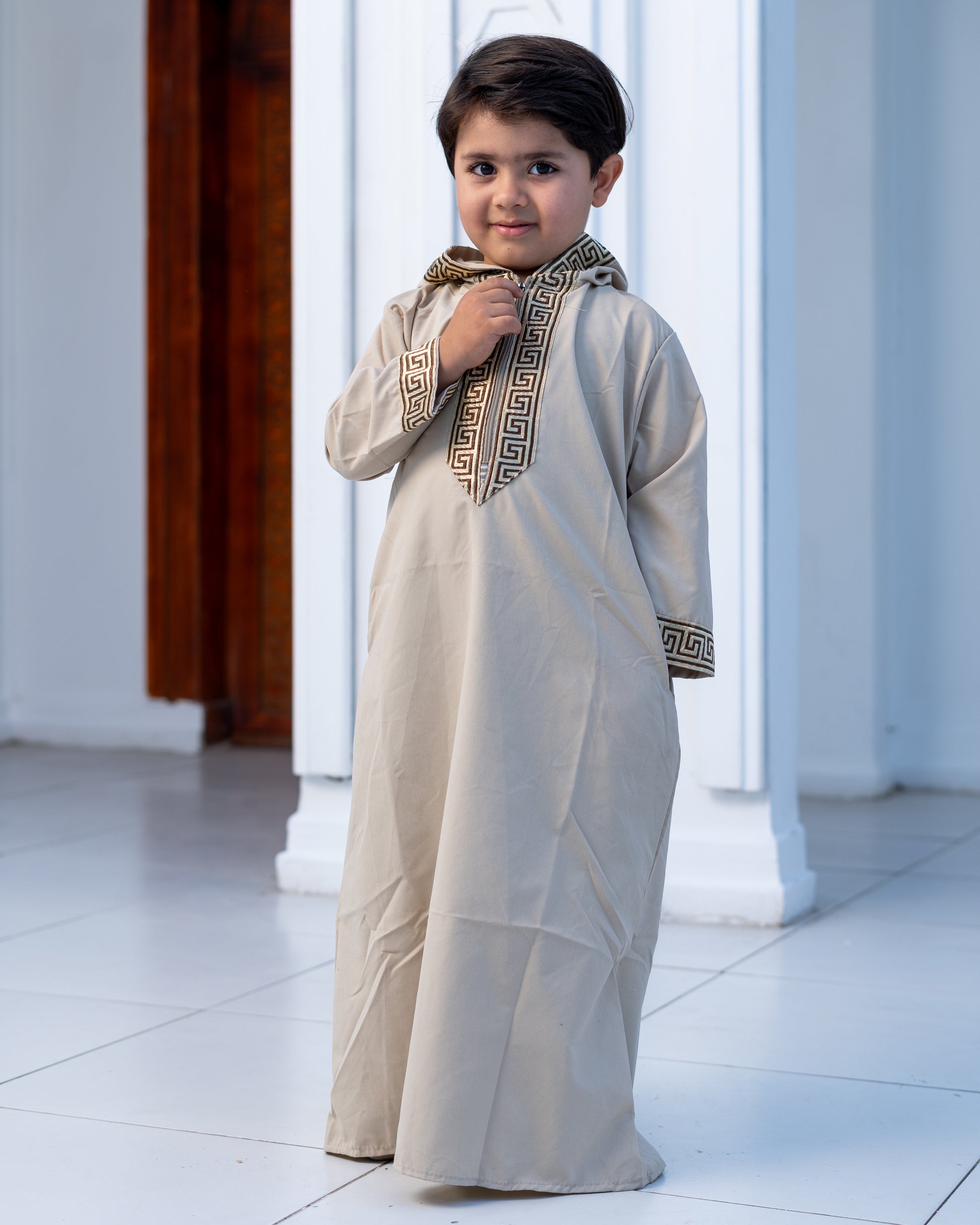 عباية أطفال بخامة قطن بوبلين 100% ناعمة ومريحة على البشرة، بتصميم شيك يناسب كل المناسبات. خامة معالَجة ضد الوبر والانكماش ولون ثابت مع الاستخدام، وتقفيل عالي وشريط تطريز فرزاتشي يضيف لمسة فخامة وأناقة.