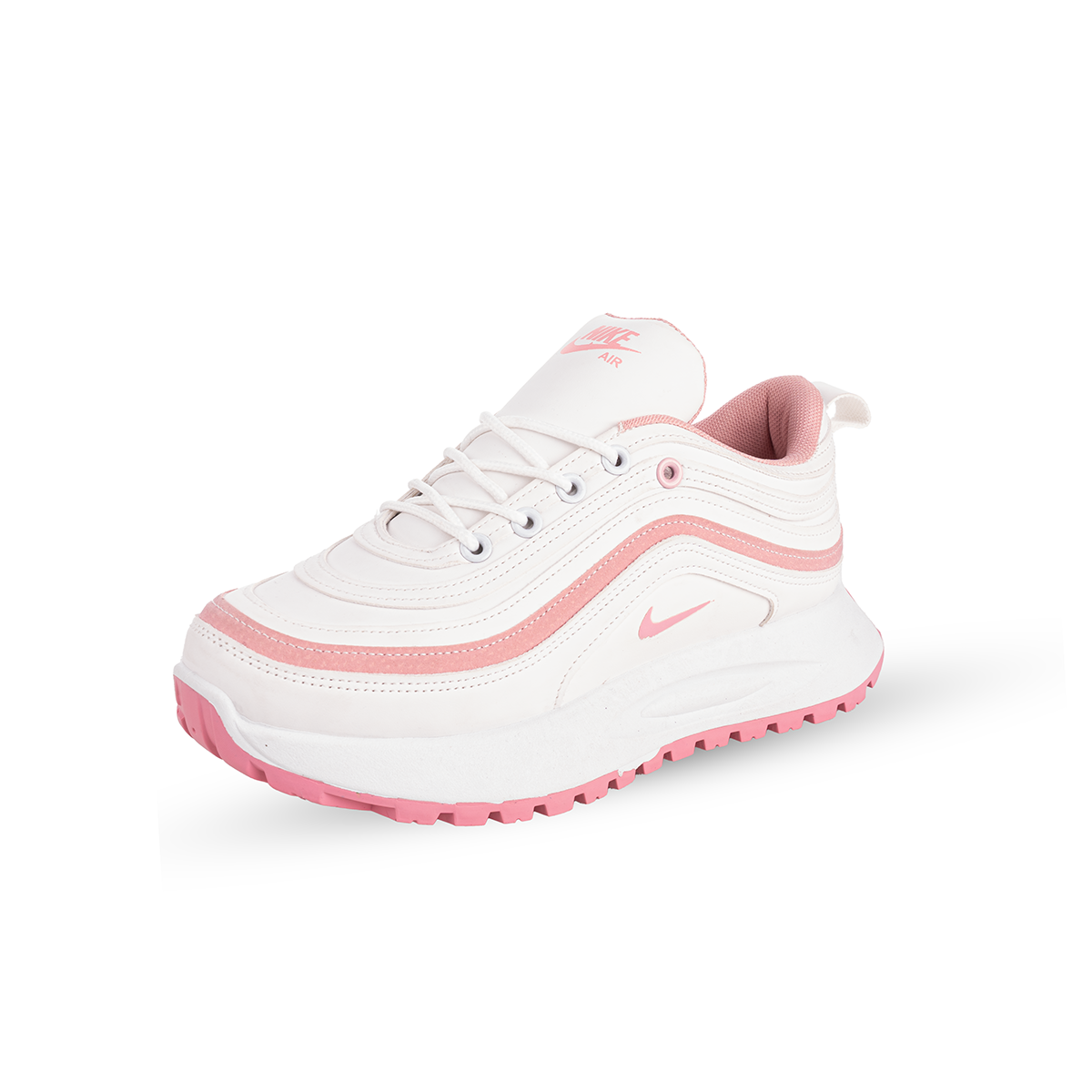 كوتشي نايك حريمي بتصميم شيك مناسب للخروجات والمهام اليومية. خامة جلد مستورد مع نعل PVC إنسيرت مريح وثابت، وفرش طبي لراحة أفضل أثناء المشي. تلبيس متوسط يناسب أغلب الأقدام.